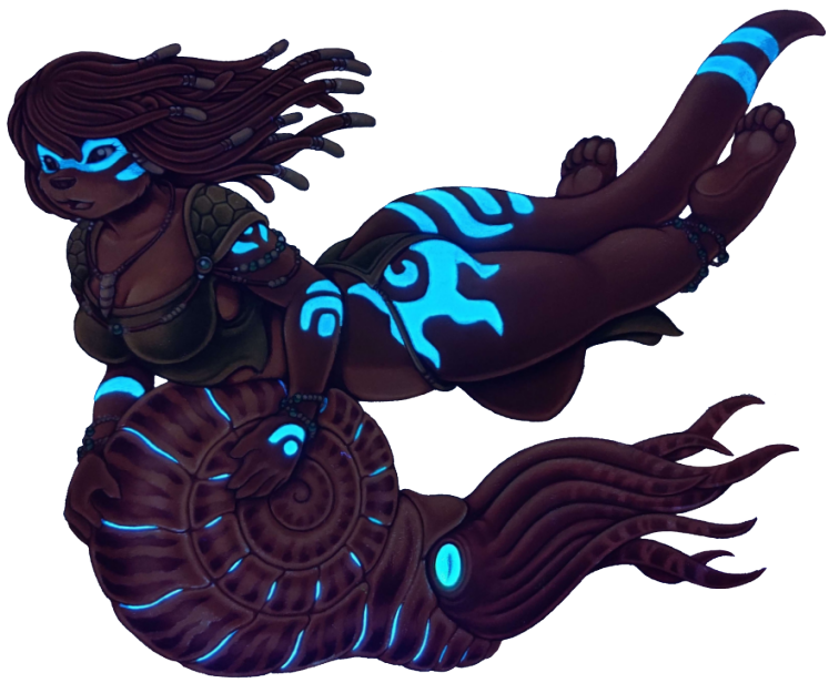DEEP TRANCE Unique to Dreamdivers, you can expend a use of your Wild Shape to enter what is known as the Deep Trance when you are out of the water. In this heightened state of consciousness, lucid dreams of the ocean spill into the world around you, changing the very nature of your relationship with land. For you, your surroundings are a new ocean, alive with neon corals, waving seaweed, and towering kelp forests in place of stone, grass and trees. Although those around you can only see a glimmer of this seascape when you pass close to them, your ability to move in this ocean is a sight to behold. While in the Deep Trance, you move about in the air using your swim speed, with all the grace you would possess under the waves, floating as you will, or darting around like a fish. In this state, all the bonuses you would have while underwater, such as your AC and damage bonuses, and your ability to cast spells without verbal components, apply for as long as you remain in the trance. However, you can only maintain the trance for as long as you can hold your breath. As might be expected, holding your breath prevents you from speaking. The Deep Trance changes certain spells. The Summon Beast and Conjure Animals spells will only bring forth aquatic beasts, but they will be able to move and survive in the air just like you. Summon or Conjure Elemental will only bring forth the water variants. Guardian of Nature makes your skin fish or sharklike instead of furry, and increases your swim speed by 10 feet when you choose the Primal Beast option, while the Great Tree option gives you a more sea-weedy appearance. Polymorph, Animal Shapes, and Shapechange all produce aquatic variants that are given the movement benefits of Deep Trance. Other appropriate spells may take on a watery theme, at your suggestion and/or the DM's discretion. You can still use your wild-shape during the Deep Trance, with another use of the ability, but any beast form you choose must have the water breathing trait. However, while wild-shaped, your breath timer is on hold. It resumes where you left off if and when you transform back into your lutrai form. You retain the other benefits of Deep Trance.
