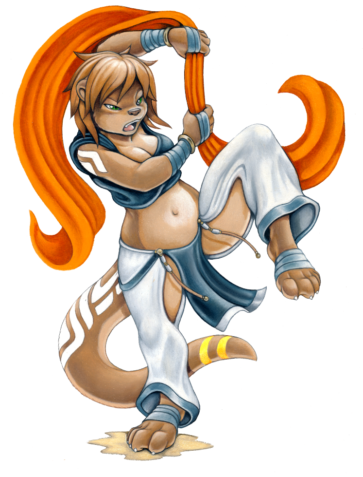LIFEGUARD MONK FIFTH EDITON In the Bygone, swimming pools, artificial beaches, and waterparks were everywhere. With these water features came the need to protect people from drowning, and to provide them with towels when necessary. The lutrai were perfectly suited to this role, so much so that it became their natural setting within the Creator State. The lifeguard was trained in water rescue, and to maintain a disciplined vigil from atop tall chairs, tower huts, or even aquatic vehicles of all kinds. This conditioning and its traditions persist even now, hundreds of years after the fall of their civilization. Over the centuries, they’ve adapted lifeguarding to the new world and even maintained some of the old parks and pools in order to train new generations. Such watery monasteries will teach the art of lifesaving, towel-fighting, and artificial respiration to those who dwell among their inhabitants and pass the certification exams. THE WET SNAP Over the centuries, the lutrai have developed a complex and unexpected form of martial art called Tau’Tekta, or Towel-Fighting. Though seemingly-absurd, this form of locker-room combat has been honed to wicked perfection over the course of seven hundred years, allowing a practiced wielder to blind, trip, disarm, or entangle their opponents with whip-like snaps of a wet towel. Though nearly any towel will do, they have their own specialized combat towels, often emblazoned with the heraldry of the park or pool from which it came. Such towels may be worn or carried in all sorts of innocuous ways, allowing the lifeguard monk to carry their weapon without drawing much attention. The form involves a lot of tangling maneuvers followed up with kicks, punches, and body-throws, eschewing more mystical maneuvers for the highly-practical art of demolishing the opponent’s ability to fight back.