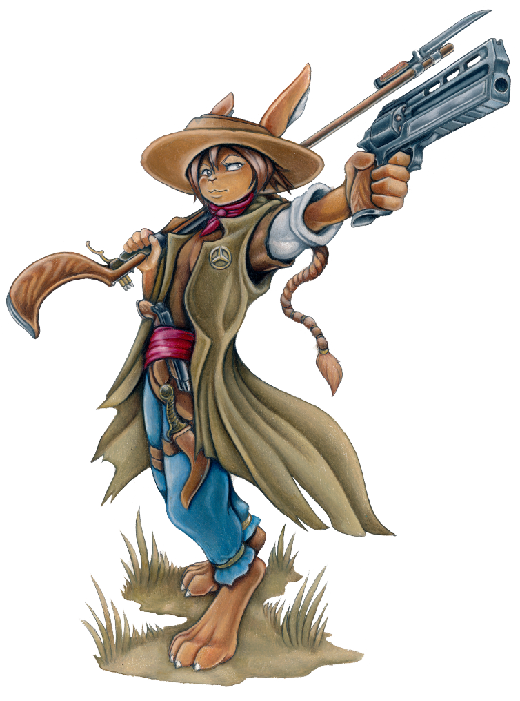 BASE NIL FIFTH EDITON Nil were the prototype testing model of all second-generation ‘nilkind’, hence their name. Unlike the ixis, they were full-sized, slightly smaller than the kuil, but comparable enough to share the same environment without adaptation. The humanoid rabbits came in a much wider range of shape and color than the more refined third generation, though they were consistently less formidable than the kuil who made them. This was by design. Most are white until they enter a new environment outside their unnaturally-pastel warrens. Nil always have a slightly anxious look to them, as if the trait had been stamped into their entire genus. They’re very light and agile, with the rare trait of thinking more clearly when they’re afraid. They are natural sprinters and jumpers, and watching the flow of their effortless parkour can be almost unsettling. They are easily overlooked when they crouch or stand very still, and it’s virtually impossible to take one by surprise due to their profound natural alertness. Society: Nil exist in two worlds – their warren, and everywhere else. Within the warren they always know their place and socialize easily, where outside there are a thousand enemies both known and unknown. That anxious look they carry only goes away in the warren, a sanctuary of both the body and the mind. Once obedient test subjects of the Creator State, they only venture out of the familiar warren in times of wider need or personal desperation. They are always out in the world for a reason, and they’re almost always counting the days until they can go home. Those who leave their close-knit society will generally do so in small parties, allowing them to keep watch over each other and form little moments of home when they’re far from it. It isn’t so much that they dislike the outside world, they just know it’s full of mentionable dangers. This has lead some to think of them as fearful and weak, at least until they’re shot through the dome on approach. Relations: Nil are relatively calm and passive in their preferred setting: home. Here they’re cheerful and hospitable, even with non-nil they’ve come to trust. They have very strong family bonds and a cooperative nature that thrives on the idea that if they don’t work together, they’ll be destroyed by any one of a thousand different dangers. They have words for all those dangers, and procedures for avoiding or dealing with them. They refer to these rules often when outside their warren, ears on a swivel, eyes wide. They go out of their way to attract as little attention as possible, especially when in need or when injured. With few exceptions, nil will come to each others’ aid in the wider world whenever possible. Most warrens have a fairly conservative societal structure still bound by the notion of the Creator State’s Ideal Family, which they have tried to emulate. So far, it’s worked out pretty well, though it leaves them a bit unnerved (or fascinated) by the wild deviations seen in the outside world. Alignment and Religion: Though law-abiding, nil warrens impart a softened strictness that makes exceptions in consideration of circumstance. Warrens always have a council-based decision-making process, though the constituents of this council tend to vary from one to the next. They’re good natured in groups, for the most part, as they’re used to banding together in order to protect and warn each other. This might be an evolution of their conditioning or just the natural behavior of the rabbit stock that went into their making. They still think of Aethos as their father. Adventurers: Nil may be tasked by the warren’s council to venture into the world in order to get something, or rescue someone, or even just to trade some stuff. Whatever the reason, they are mostly encountered in all-nil parties with a very specific goal that they can’t tell you about (probably) because that would be dangerous and someone might hear about it. And of course, every now and then, you’ll get a young nil who actually wants to venture out into the world just to see its wonders. Male Names: Anor-32, Dolo-44, Basa-67 (of Warren X) Female Names: Juinper-42, Rose-20, Hyssop-66 (of Warren X)