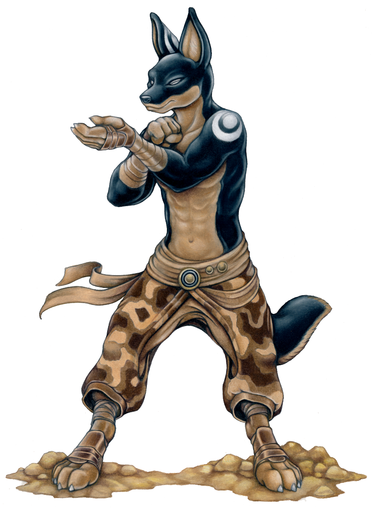SOUTHERN SKOLE FIFTH EDITON Physical Description: There are two broad species of skole, one being the wilder wolf-like northern variant, the other having retained more of their original domestic features. Both are somewhat larger than humans and considerably stronger. Northern skole bear predominantly lupine features, having adapted to colder climates over the centuries since the collapse of the Creator State. They are larger, heavier of limb and thicker of coat. Southern skole are leaner, more densely-formed and short-coated. They have adapted to warmer climes, and tend to have a more sophisticated bearing. Society: Skole society is rough no matter where you find it. Though the northern barbarian clans are renowned for their rough and rugged natures, the southern clans are no softer than their lupine cousins. Both cultures retain the militaristic shell of their former lives and purpose. They have done what they can to make a new society that’s all their own, but their crippling lack of art and culture was by design, and very difficult for them to overcome naturally. They have picked up a few new tricks along the path to independence, but the impression outsiders often get is that the skole are still clinging to the tenets of a culture that’s long-gone. They are waiting for something that will not come back. Relations: Skole may be gruff and serious-minded, but they do show warmth and affection to those with whom they share loyalties. In fact this is just about the only way to even get anywhere close to friendship with them, for they have no ‘casual’ relations. Few could be more loyal to cause or companion, though winning that loyalty is often an arduous, dangerous undertaking. They have no need for indirectness or tact, as this was the language and manner of the masters they’ve long since lost. Skole form strong pair-bonds, either by intimacy or battle, and can be honest to a fault. They rarely grant the benefit of the doubt to those they don’t know, but their acts of fealty and sacrifice in the face of adversity is as well-known as their innate mistrust of the unfamiliar. Alignment and Religion: Skoles have a strong predisposition to order, whether fair or cruel, and don’t do well with unanticipated deviations. They’re quick thinkers but often lack the creativity to anticipate or overcome chaotic situations. Those who follow any code of honor or ethics will do so with exceptional enthusiasm and zeal, however, and this can become contagious, especially among other skoles. As a result they will tend to gravitate towards strong leadership, with wisdom and charisma being every bit as important as martial skill or devotion. Their military origins make them ideal soldiers and followers, along with their formidable size and strength. Adventurers: Skole are constantly driven to prove their worth, both to themselves and others. They learn to see everything as some form of challenge, which helps them deal with their problems as ‘foes’. Great hunts, noble duels, and the conquest of terrifying natural obstacles will do for most, but others venture abroad in order to expand their horizons and their range of challenges. They don’t do anything easy, and have an unusually difficult time stooping to simpler challenges.